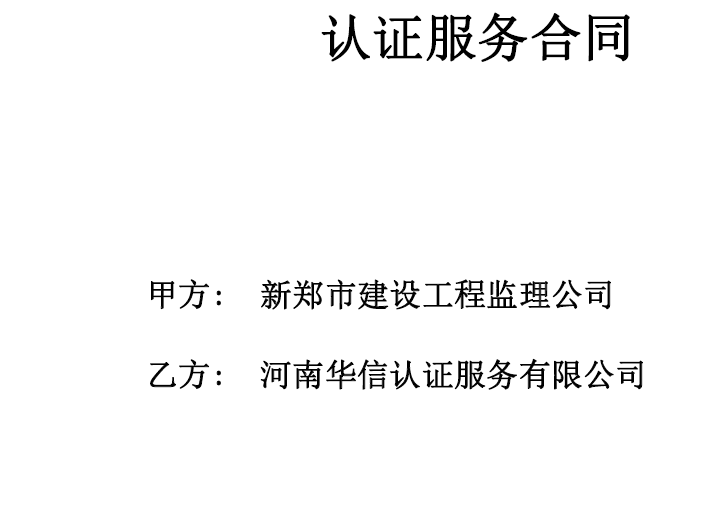 祝贺新郑市建设工程监理公司与华信签定认证服务合同!