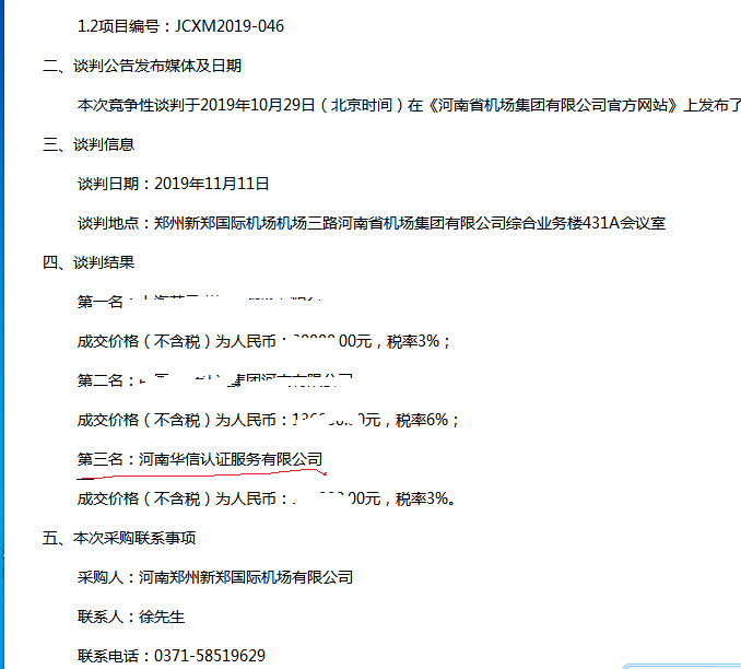 恭祝华信认证入围河南新郑国际机场ISO认证服务项目!