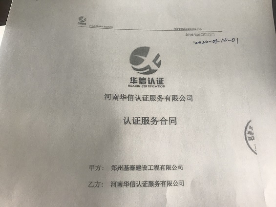 恭祝郑州基泰建设工程有限公司与华信认证签定认证服务合同!
