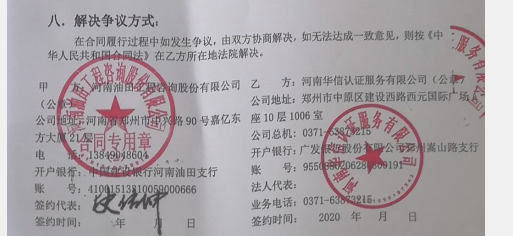 恭祝河南油田工程咨询股份有限公司与华信签定认证服务合同