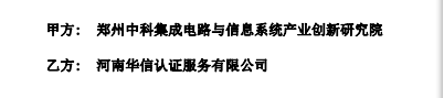 恭祝中科院系统单位郑州中科集成电路与信息系统产业创新研究院与我公司初步达成认证服务协议!