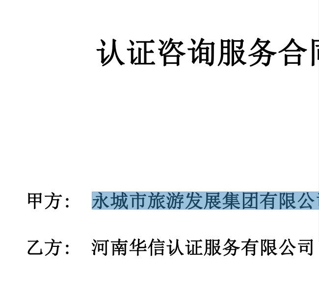 恭喜永城市旅游发展集团有限公司与华信签定认证服务合同
