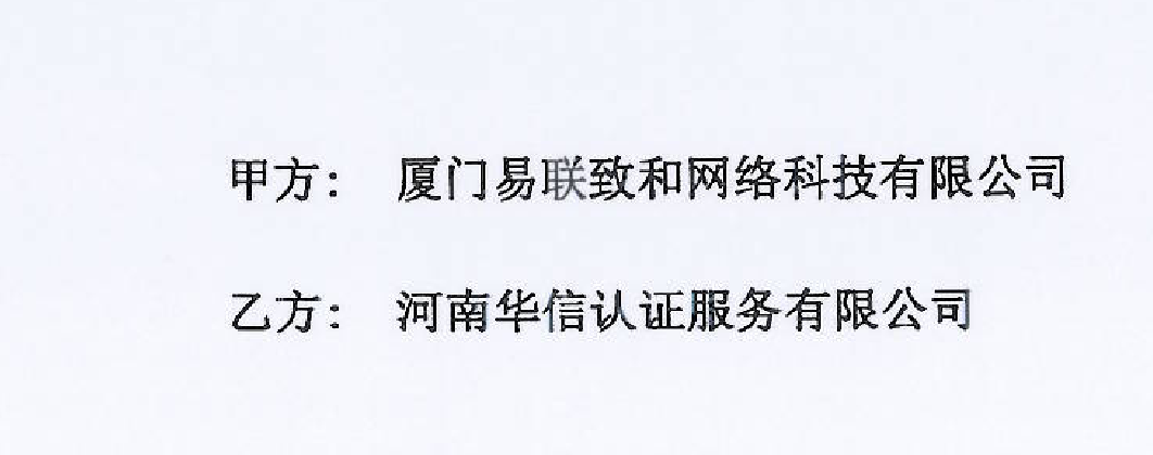 祝厦门易联致和网络科技有限公司与华信签定服务合同