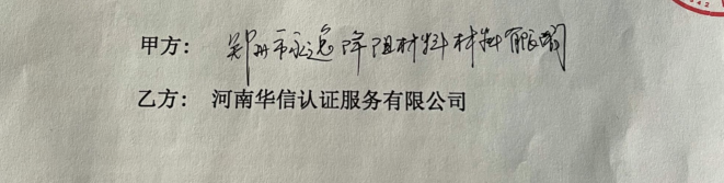 祝郑州市永逸降阻材料有限公司与华信签定认证服务合同!