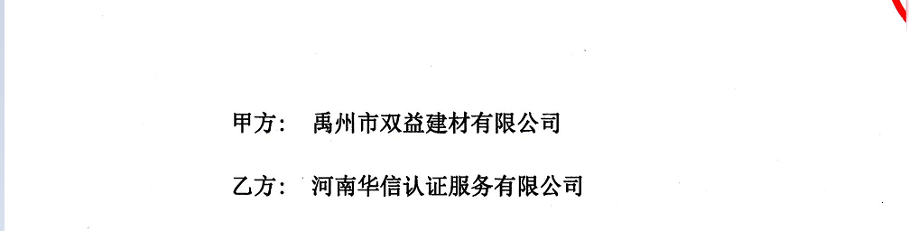 祝禹州市双益建材有限公司与华信签定认证服务合同!