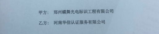 祝郑州碟舞光电标识工程有限公司与华信签定认证服务合同!