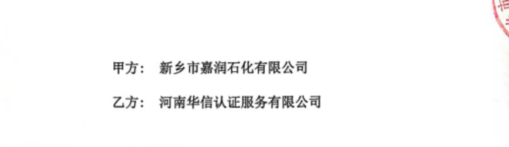 祝新乡市嘉润石化有限公司与华信签定认证服务合同!