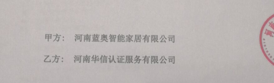 祝河南蓝奥智能家居有限公司与华信签定认证服务合同!
