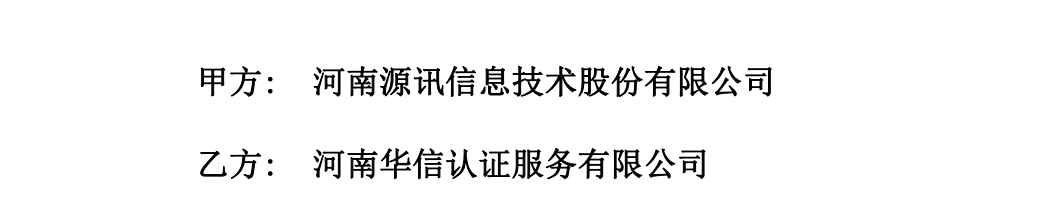 祝河南源讯信息技术股份有限公司与华信签定认证服务合同!