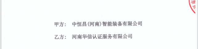 祝中恒昌 (河南)智能装备有限公司与华信签定认证服务合同!