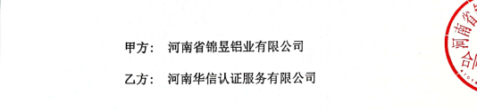 祝河南省锦昱铝业有限公司与华信签定认证服务合同!