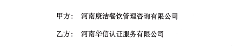 祝河南康洁餐饮管理咨询有限公司与华信签定认证服务合同!