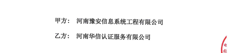 祝河南豫安信息系统工程有限公司与华信签定认证服务合同!