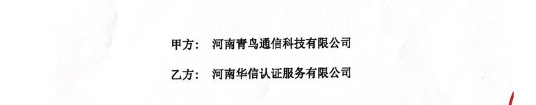 祝河南青鸟通信科技有限公司与华信签定认证服务合同!