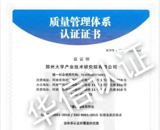 恭祝郑州大学产业技术研究院有限公司获得华信认证颁发的认证证书!