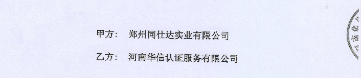 祝郑州同仕达实业有限公司与华信签定认证服务合同!