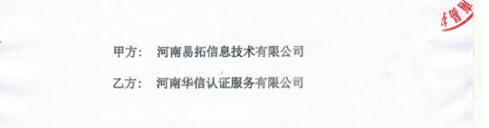 祝河南易拓信息技术有限公司与华信签定认证服务合同!