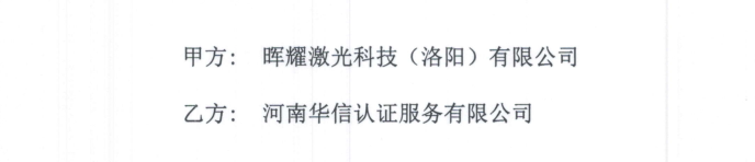 祝晖耀激光科技 (洛阳)有限公司与华信签定认证服务合同!