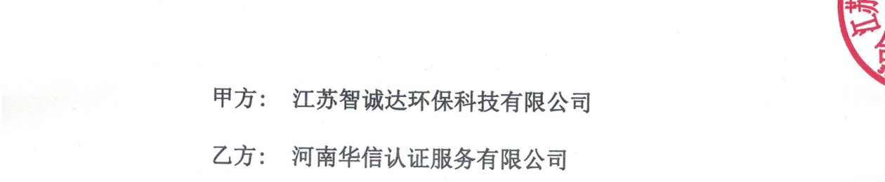 祝江苏智诚达环保科技有限公司与华信签定认证服务合同!