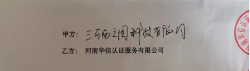 祝河南丰博智能水联网有限公司与华信签定认证服务合同!