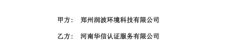祝郑州润波环境科技有限公司与华信签定认证服务合同!