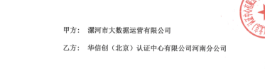 祝漯河市大数据运营有限公司与华信创签定认证服务合同!