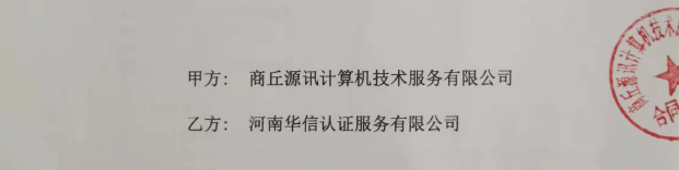 祝商丘源讯计算机技术服务有限公司与华信签定认证服务合同!