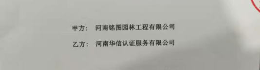 祝河南铭图园林工程有限公司与华信签定认证服务合同!