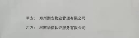 祝郑州润安物业管理有限公司与华信签定认证服务合同!