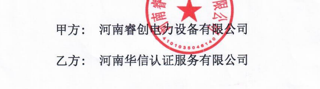 祝河南睿创电力设备有限公司与华信签定认证服务合同!