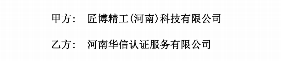 祝匠博精工(河南)科技有限公司与华信签定认证服务合同!