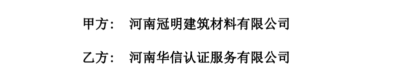 祝河南冠明建筑材料有限公司与华信签定认证服务合同!